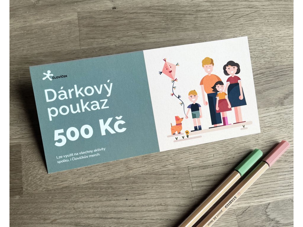 Dárkový poukaz lze využít na všechny aktivity spolku, včetně online nákupu na našem e-shopu